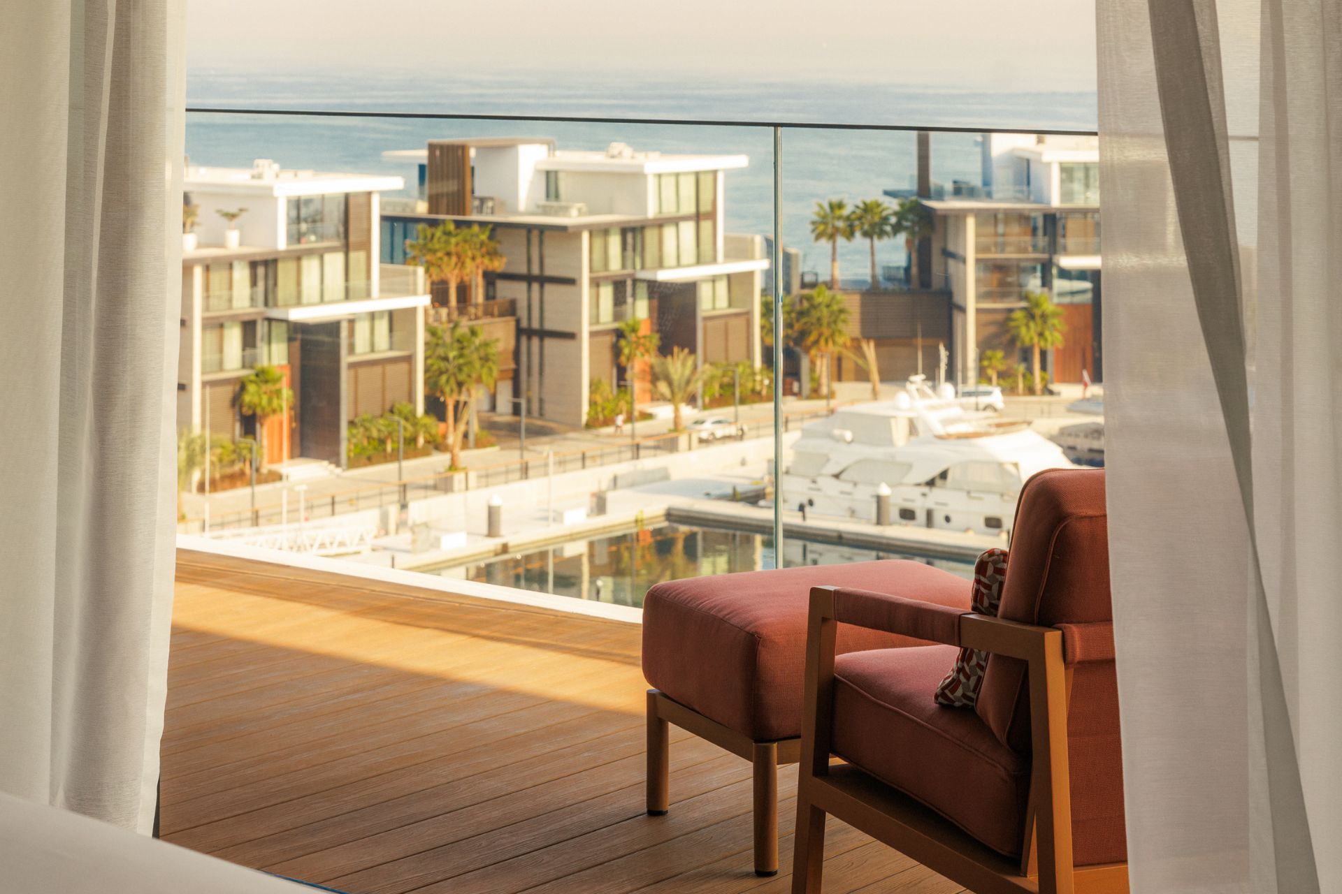 يتميز جناح مارينا ديلوكس بمساحة فسيحة، إلى جانب منطقة معيشة منفصلة وتراس كبير يمتاز بإطلالات خلابة على المرسى.