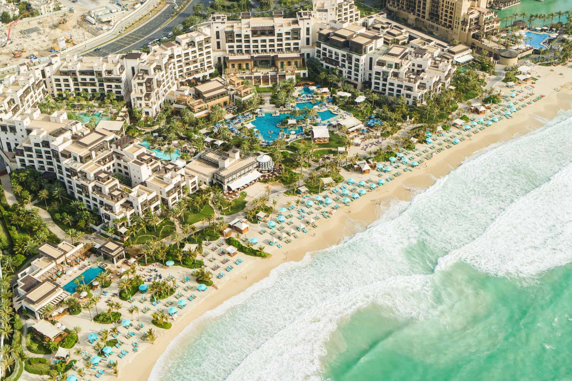 Große Terrasse mit Blick auf die Gärten des Resorts