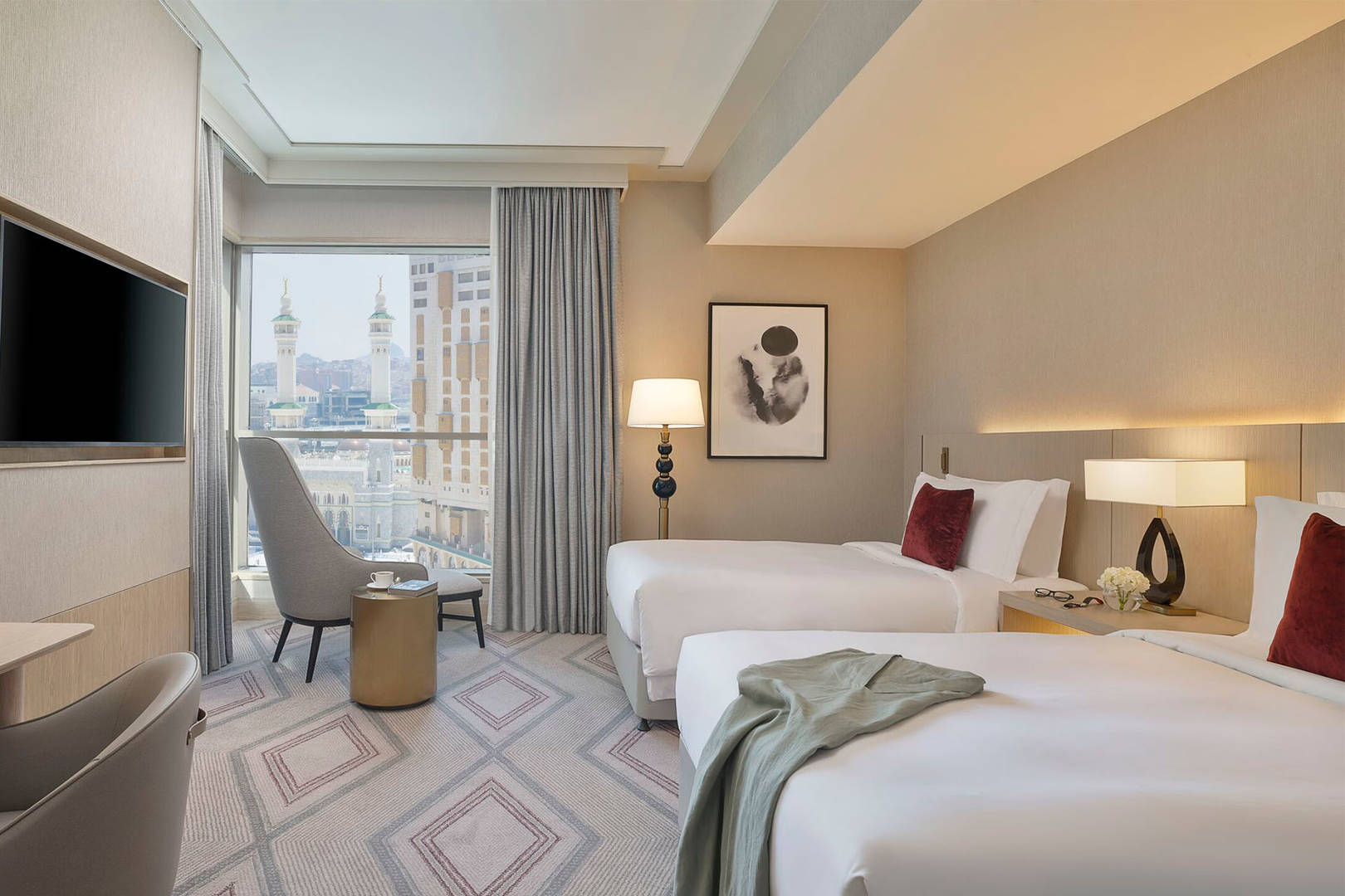 City & Masjid Al Haram views, a spacious area or marble bath, and a luxurious King or twin bed.