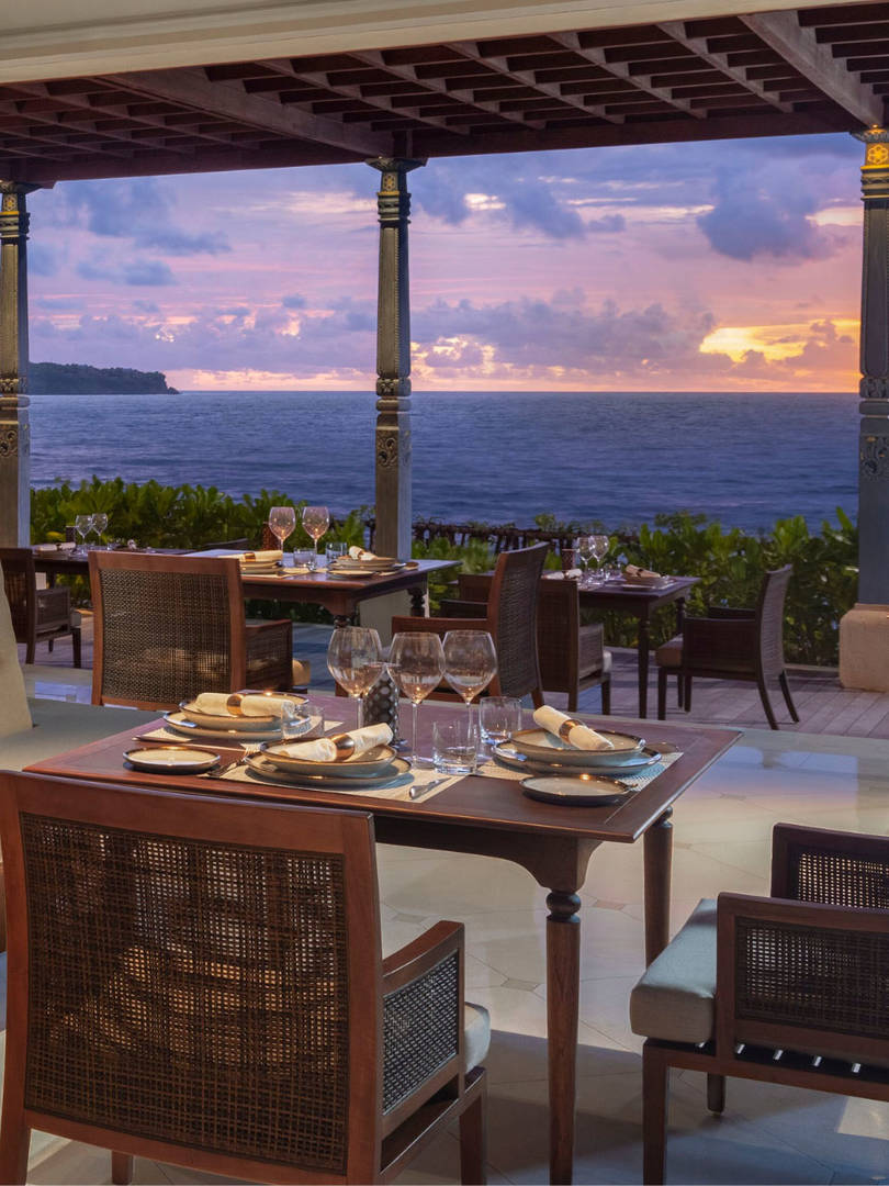 Disfrute de las vistas al océano Índico con aperitivos junto a la piscina infinita durante el día y cócteles al atardecer con la compañía de familia y amigos