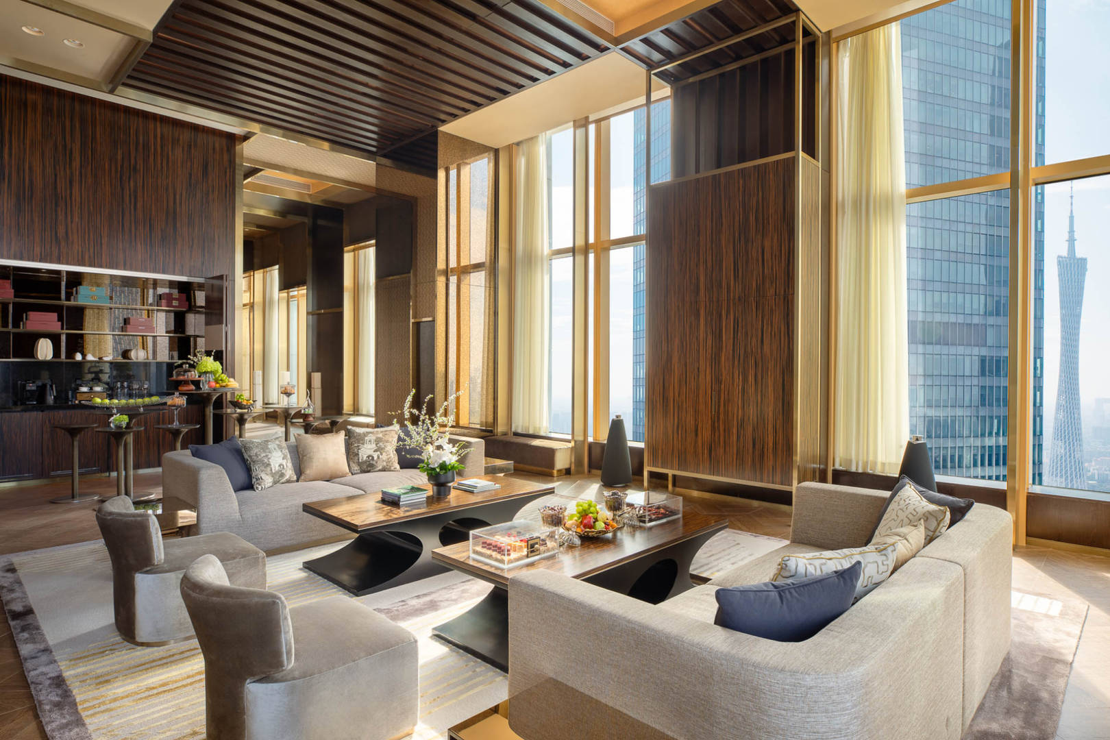 A highlight of our Tang dynasty-inspired design, this suite is spread over two levels with a king-size bedroom raised above a spacious separate living area